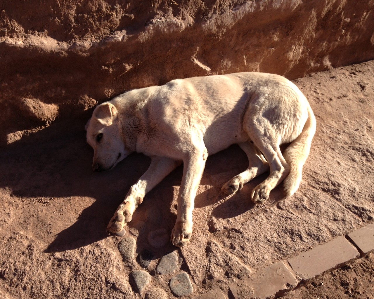 De bijnaam van San Pedro is San Perro. Perro betekent 'hond' in het Spaans. Het wemelt er namelijk van de zwerfhonden. Maar de honden zien er helemaal niet slecht of zielig uit. Chili ligt op het zuidelijk halfrond, en het is er nu zomer. De terrasjes zitten vol en de honden komen er gezellig bij liggen!