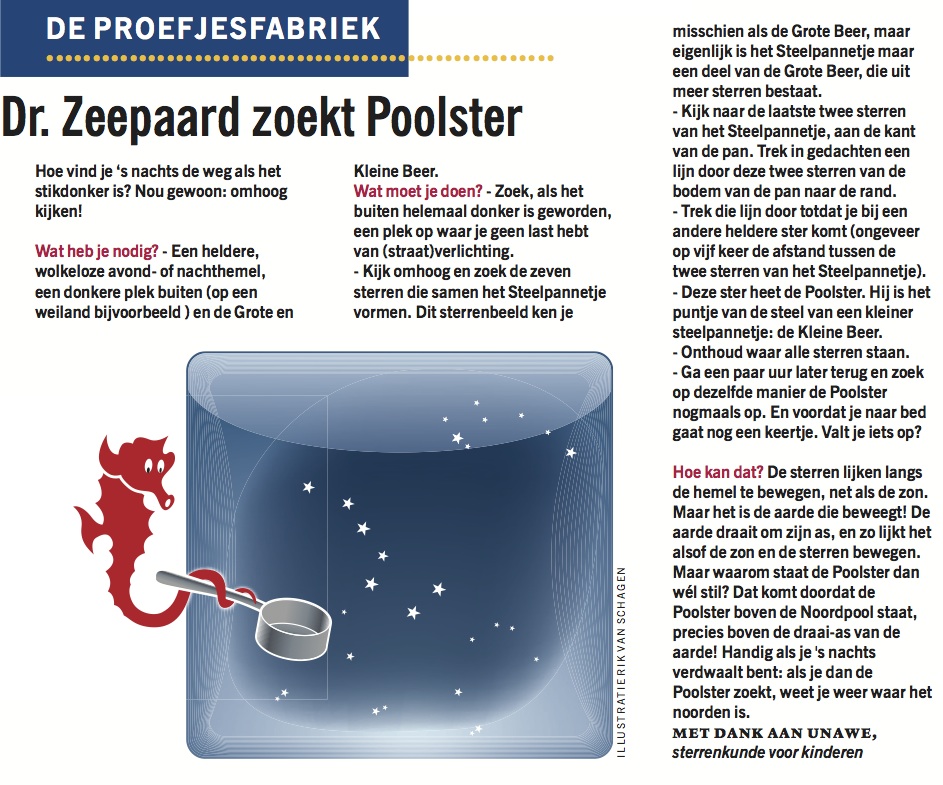 Hoe vind je 's nachts de weg als het stikdonker is? Nou gewoon: omhoog kijken! In dit derde Dr. Zeepaard proefje dat gemaakt is door EU-UNAWE, leer je hoe je de Poolster vindt aan de nachthemel: zo raak je nooit meer de weg kwijt!