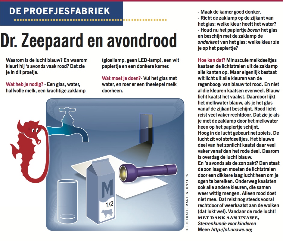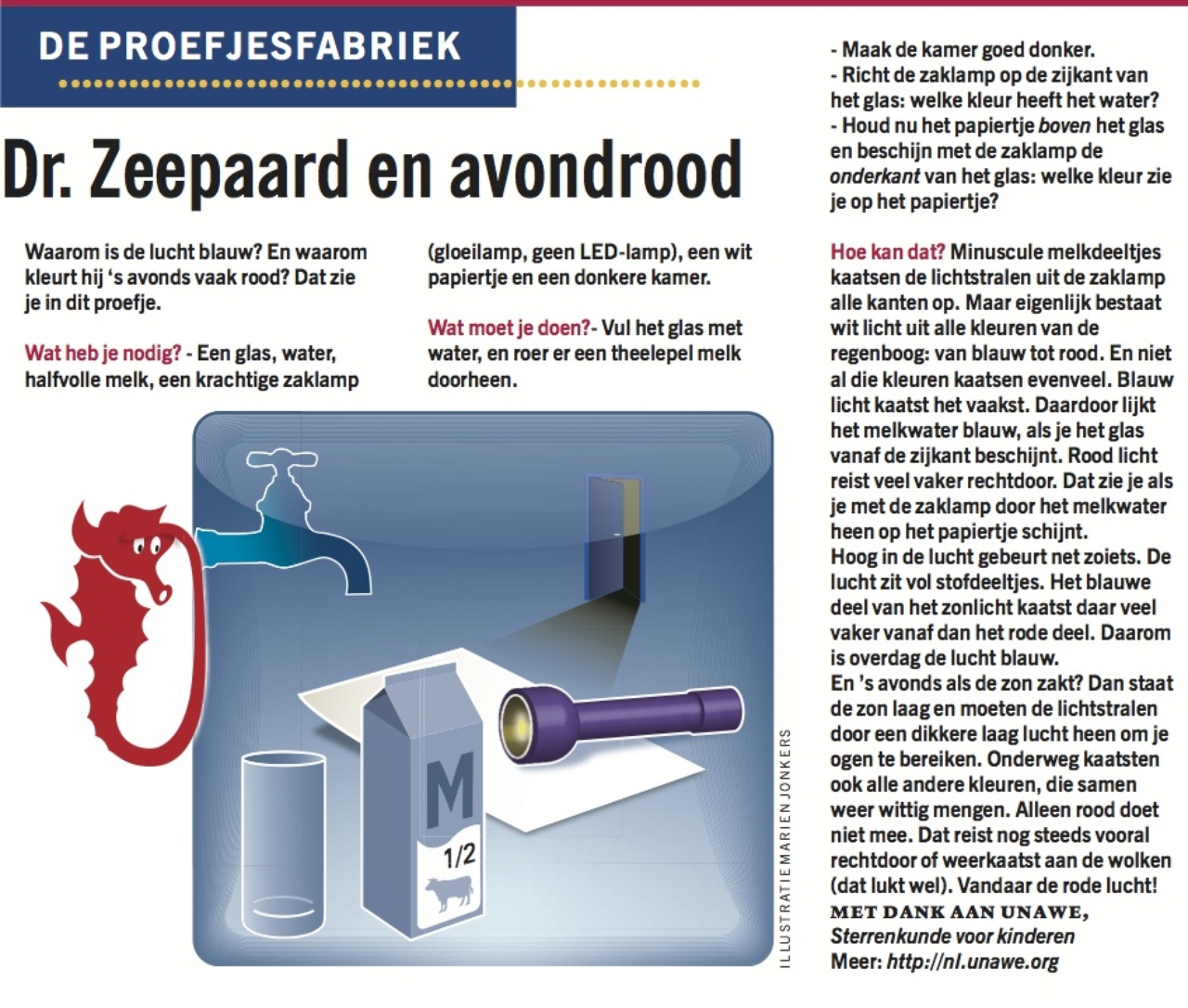 Afgelopen zaterdag verscheen het zesde EU-UNAWE sterrenkundige proefje in de Kleine Wetenschap, de junior wetenschapsbijlage van het NRC Handelsblad.