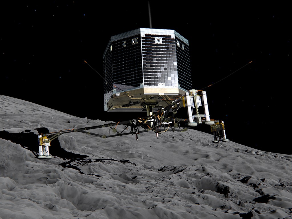 Impressie van het ruimtevaartuig Philae op komeet 67P/Churyumov-Gerasimenko.