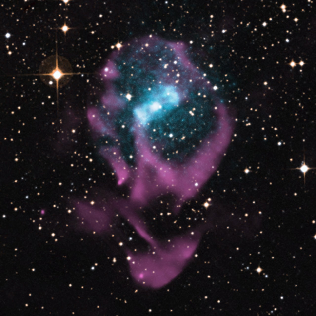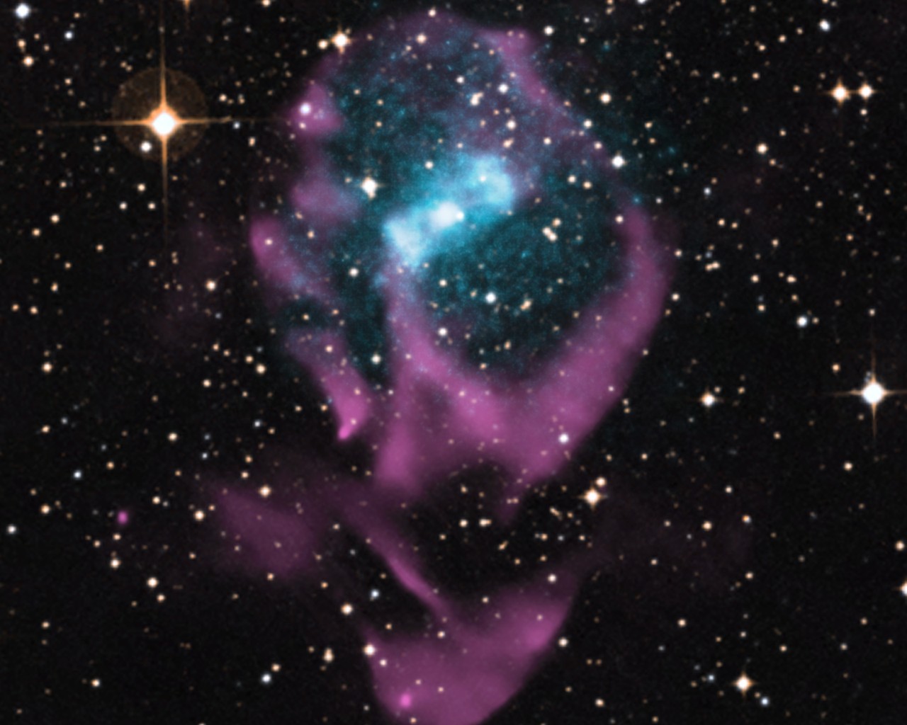 Hier zie je Circinus X-1, de jongste röntgendubbelster die ooit is gevonden! Hij is minder dan 4.600 jaar oud. Dat klinkt misschien oud, maar voor sterren is dat erg jong!