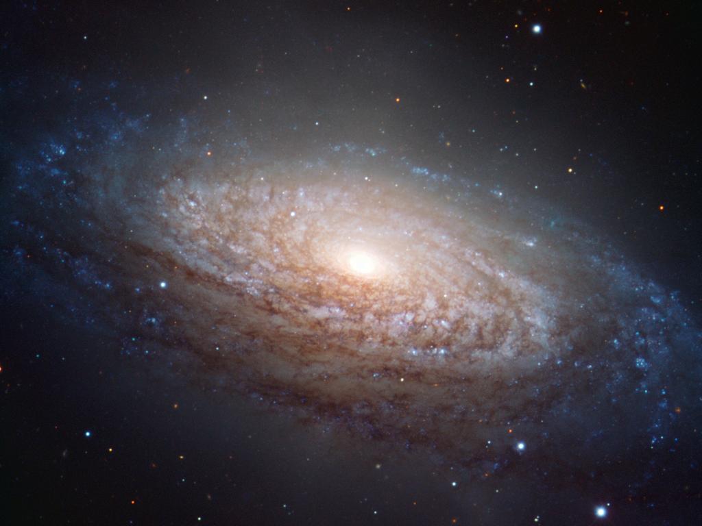 Op deze foto kun je zien dat de kleur van het sterrenstelsel in het centrum anders is dan in de rand. Het sterrenstelsel ziet er meer geel en oranje uit in het centrum (sterrenkundigen zeggen dat het “roodachtig” is), terwijl het blauw is in de buitenste gebieden. Dit komt door de kleuren van de sterren die zich in het sterrenstelsel bevinden. Oudere sterren zijn roder dan jongere sterren en leven in het centrum. Jonge sterren zijn blauw en leven verder naar buiten.