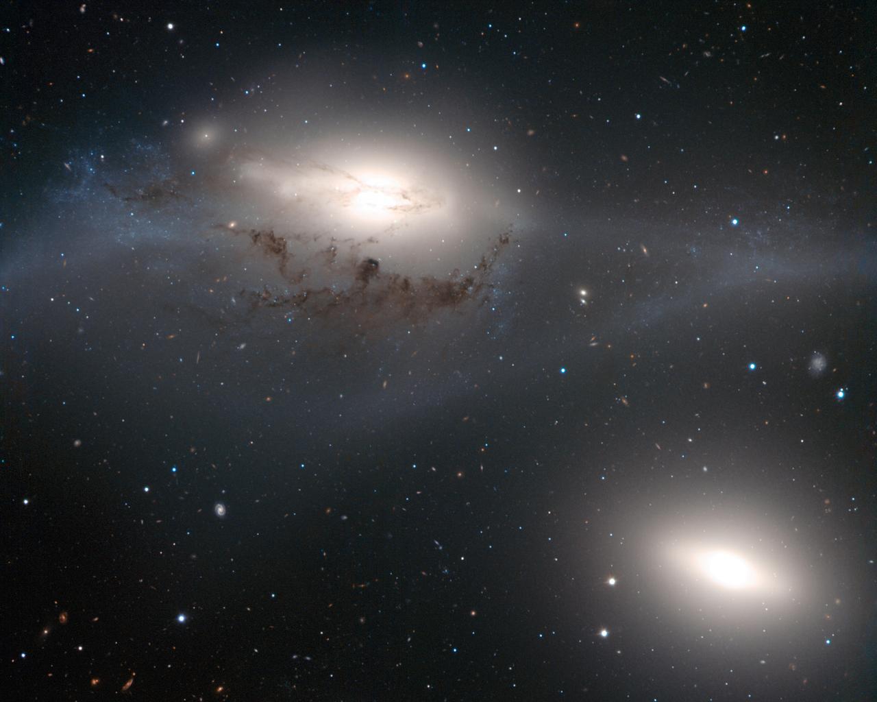 Het gebeurt niet vaak dat sterrenkundigen het heelal in kijken en een paar ogen zien die naar hen terugstaren. Toch is dat precies wat je hier ziet. Dit zijn niet de ogen van een of ander ruimtewezen, maar een tweetal sterrenstelsels die ‘De Ogen’ worden genoemd. Ze zien er namelijk precies uit als een paar lichtgevende witte oogballen in het donker! (Klik op de foto om beide ‘Ogen’ te zien).