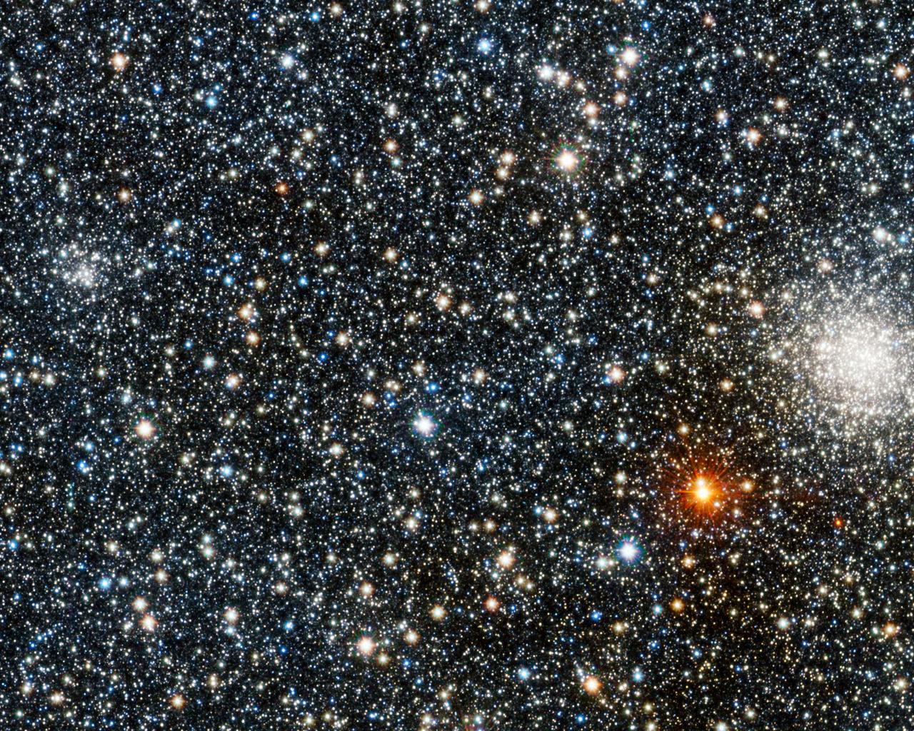In het kleine centrum van de Melkweg is het veel drukker. Hier worden dan ook de meeste sterren gevonden. In deze nieuwe foto, die genomen is door telescoop VISTA, zie je een klein gedeelte van dit drukke centrum. Het is hier zo druk, dat als we hier naartoe zouden verhuizen, de nachthemel spectaculair zou veranderen! Sterren zouden zo dichtbij zijn en zoveel licht geven, dat je ’s nachts gewoon een boek kan lezen zonder een lamp aan te doen!