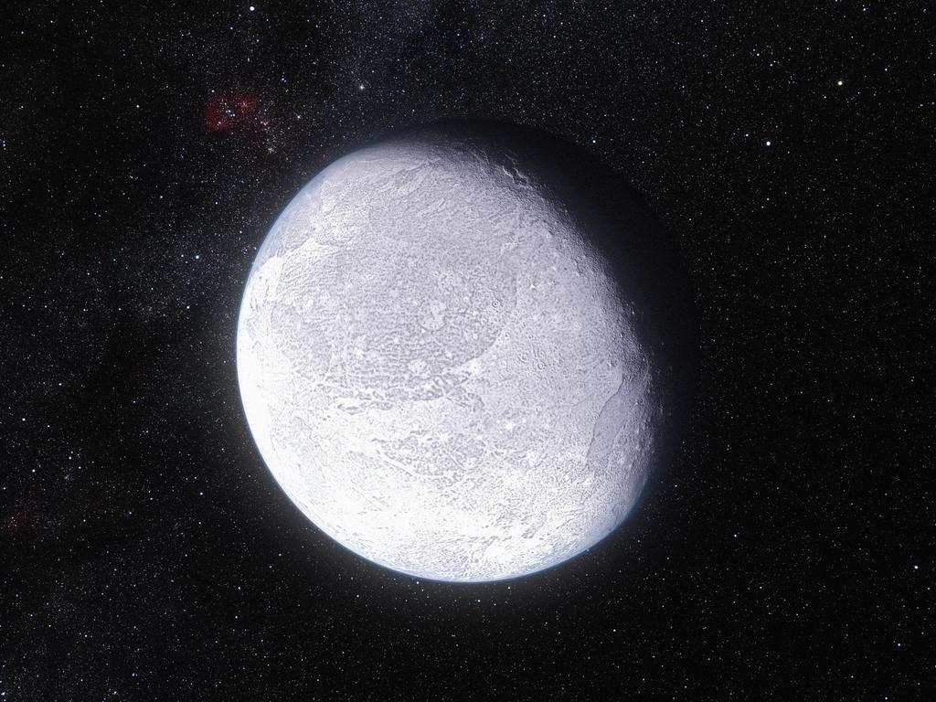 De planeet die uit de groep is gegooid, wordt Pluto genoemd. Het was de planeet die het verste van de Zon afstond en ook het allerkleinste was in ons zonnestelsel. Pluto is zo klein – hij is zelfs kleiner dan onze maan – dat veel sterrenkundigen eraan twijfelden of hij eigenlijk wel een planeet is. Ze vonden dat hij eigenlijk bij een groep hoorde van kleinere objecten, die wel vaker worden ontdekt in de buitenste delen van het zonnestelsel.