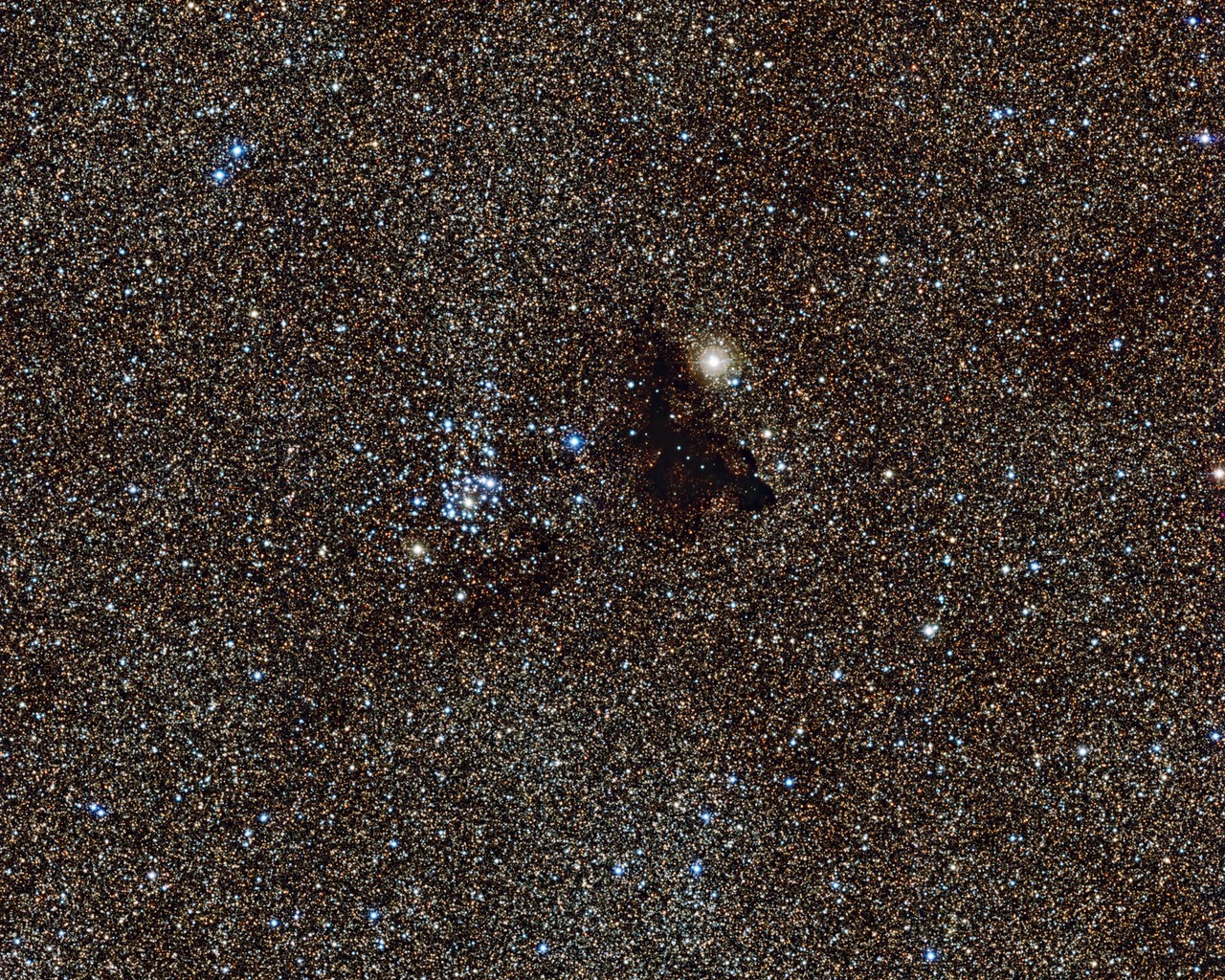 Wat een prachtige ESO-foto van een gebied met sterren! Maar wacht eens, het lijkt alsof iemand iets heeft gemorst in het midden van de foto. Tenminste, dat dacht de sterrenkundige die dit gedeelte van de sterrenhemel het eerst ontdekte. Hij drukte zich wel poëtischer uit: hij beschreef het als ‘een druppel inkt aan de heldere hemel’.