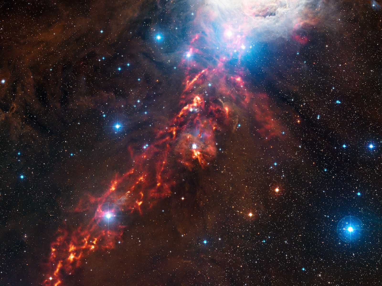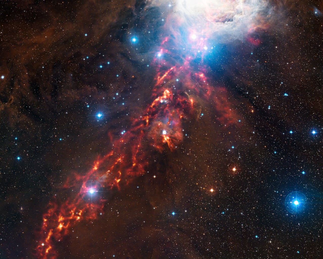 Het opvallende object op deze foto is ook best wel 'cool'. Het lijkt misschien op een sliert van vuur die zich door de ruimte uitstrekt, maar het is eigenlijk een wolk van gas en stof van -250 °C! Dat is ijskoud!