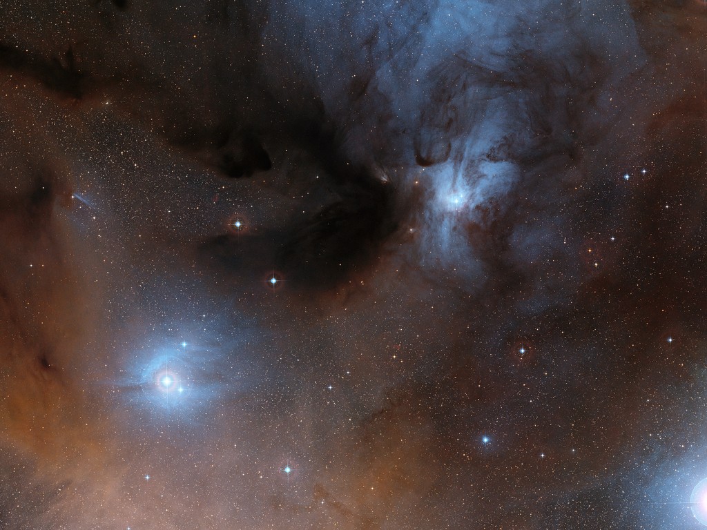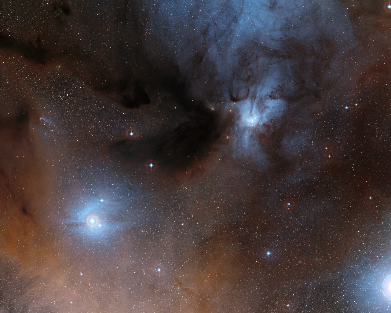Deze wonderbaarlijke afbeelding laat donkere en lichte wolken zien, met daarin drie Zon-achtige sterren waarbij net bouwstenen van het leven zijn gevonden!