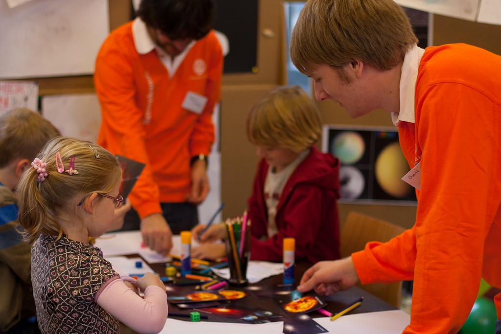 Kinderen en begeleiders big de Vette Manen tekenwedstrijd tijdens de Leidse Wetenschapsdag!