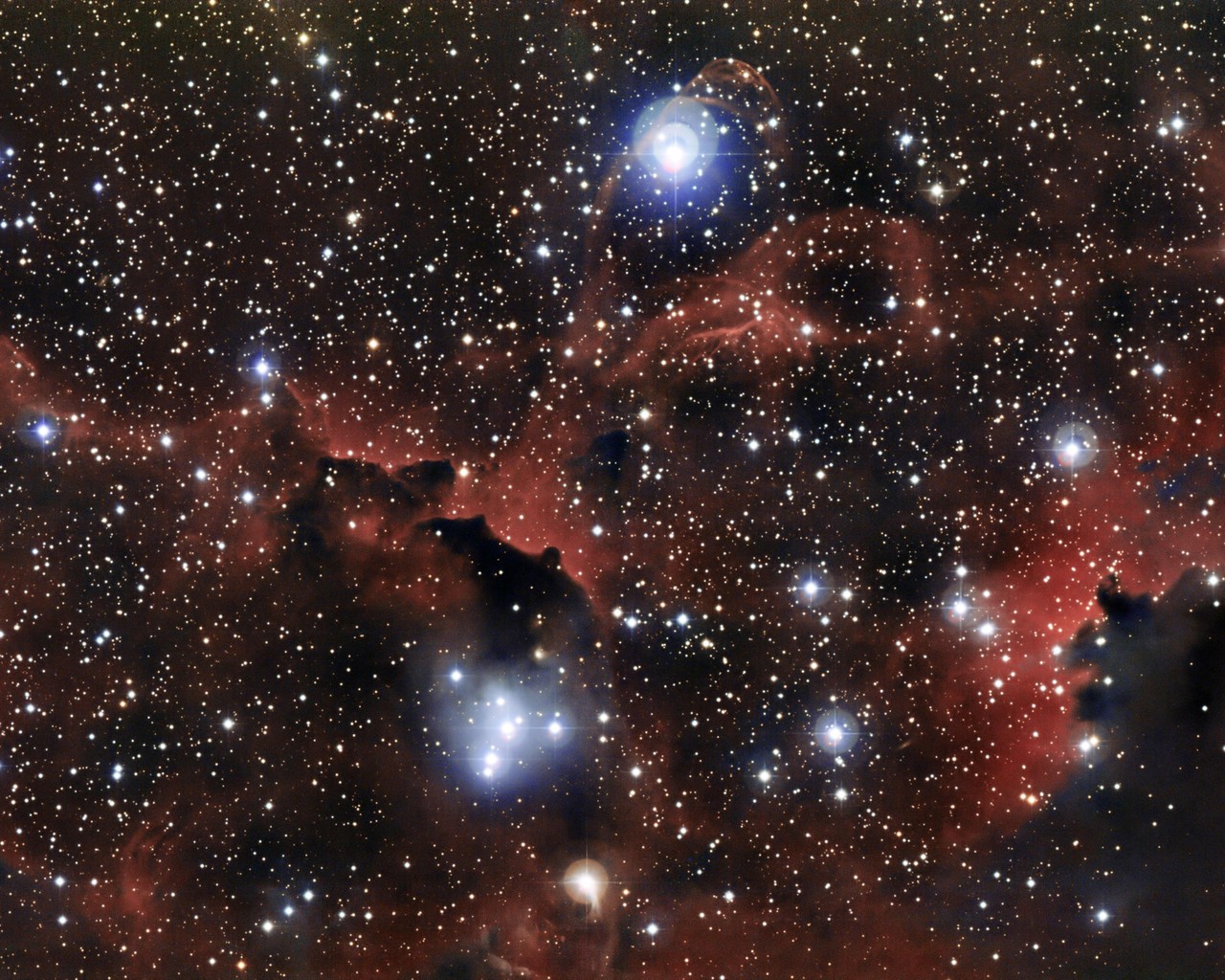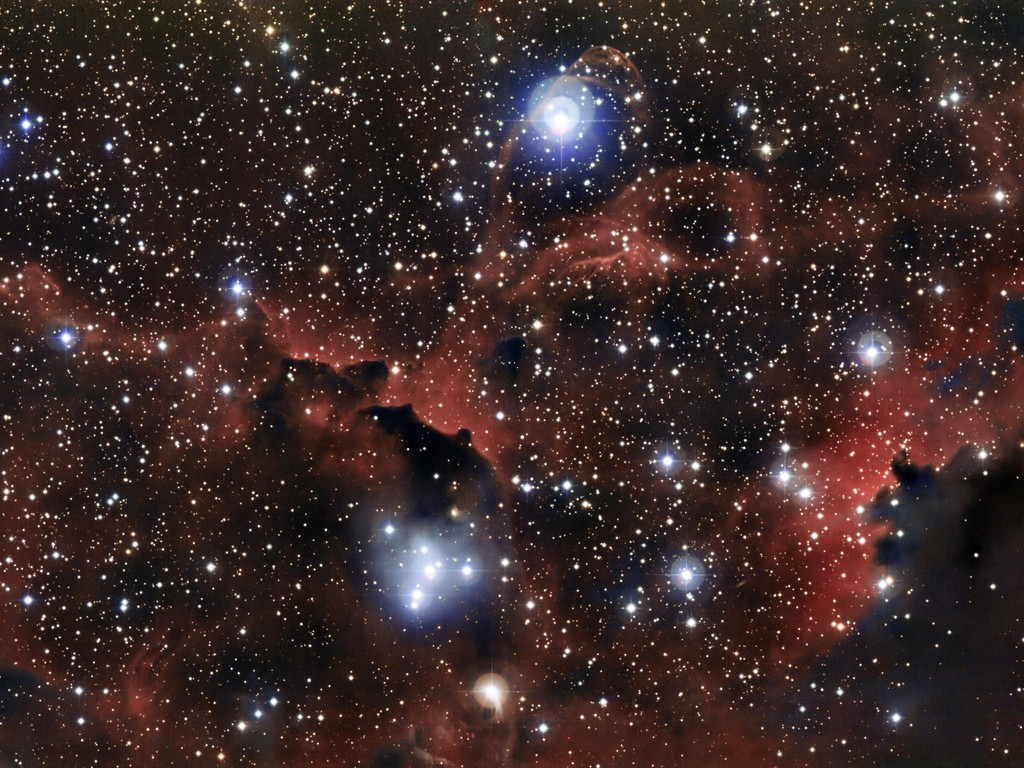 De heldere sterren en draaikolken van oplichtend gas op deze foto zijn onderdeel van de prachtige Zeemeeuwnevel. Dit enorme object in de vorm van een vogel bestaat uit drie grote wolken van gas: een kop en twee vleugels. De hele nevel is hier te zien. Op deze foto is maar een klein deel van de nevel te zien: zie jij welk gedeelte het is? Het zijn de vleugels! Had jij het goed?